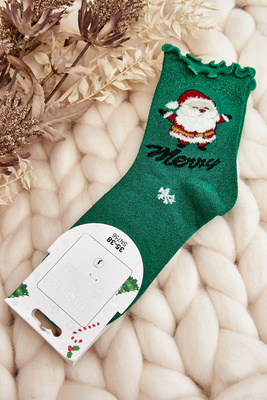 +4Damskie Błyszczące Świąteczne Skarpety Z Mikołajem Zielone