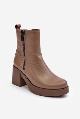 +2Botki Skórzane Na Masywnym Obcasie Z Suwakami Ciemnobeżowe Lemar Littosa