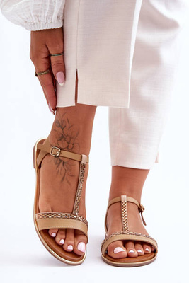 +1Damskie Sandały S.Barski Z Kamieniami KV-2775-30 Beżowe