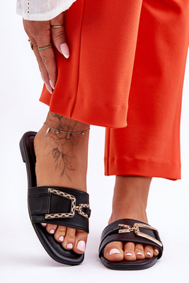 +3Damskie Klasyczne Klapki Z Ozdobą Czarne Impressive