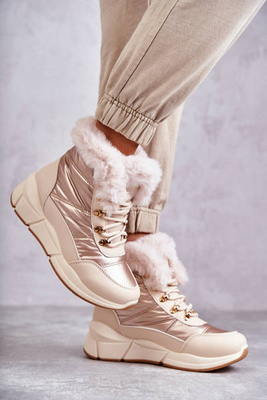 +1Damskie Śniegowce Sznurowane Jasny Beż Anna