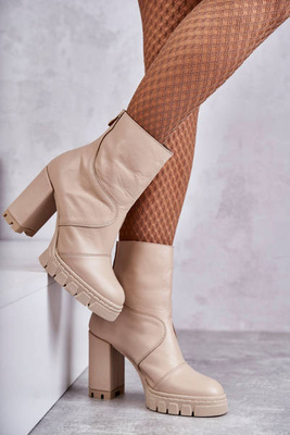+2Skórzane Botki Na Obcasie Beżowe Elia