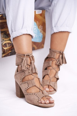 +9Sandały Damskie Na Słupku Zamszowe Beżowe Anastasie