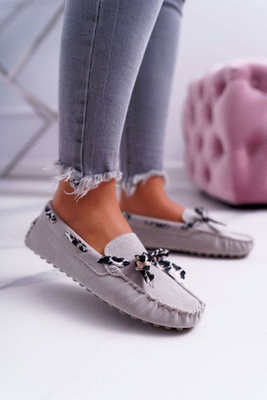 +2Mokasyny Damskie Zamszowe Komfortowe Szare Buggy