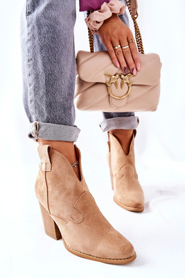 Damskie Botki Na Słupku Zamszowe Camel Niki