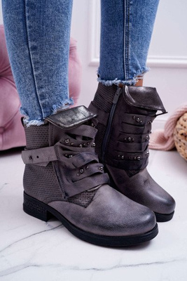 +1Damskie Botki Płaski Obcas Ciepłe Szare Debra
