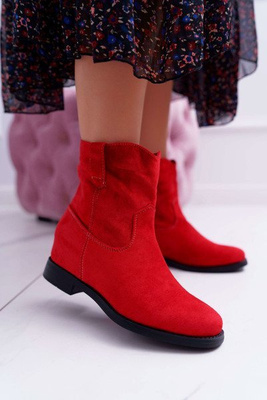 +2Botki Damskie Na Koturnie Płaski Obcas Ocieplane Za Kostkę Czerwone Demini