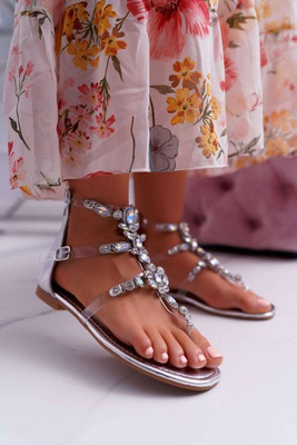 Sandały Damskie Srebrne z Kryształkami Ywena