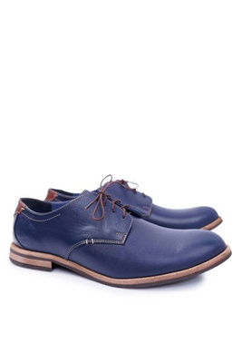 +3Skórzane Męskie Sznurowane Granatowe Ażurowe Półbuty Markos