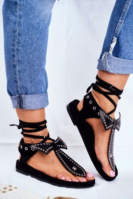 +3Lu Boo Damskie Czarne Wiązane Sandały Japonki Mara