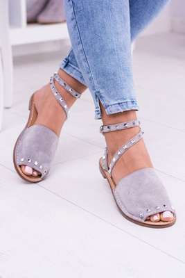 +2Lu Boo Szare Ażurowe Baleriny Lordsy Ćwieki Carmar