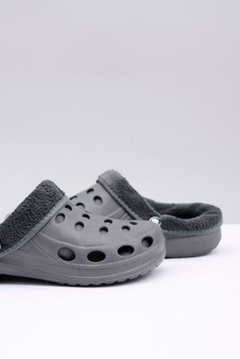 +13Damskie Klapki Ocieplane Szare Kroksy EVA