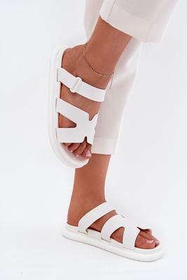 +4Gumowe Klapki Damskie Z Paskiem Białe Tavirae
