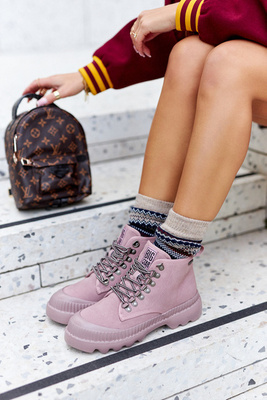 +3Skórzane Trapery Botki Big Star II274367 Różowe
