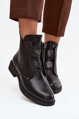 Skórzane Botki Workery Damskie Ocieplane Na Zamek Artiker 57C2257 Czarne