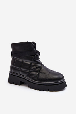 Damskie Botki Z Pikowaniem I Wiązaniem Czarne Bizzanti