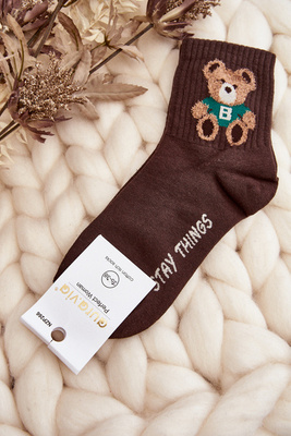 Damskie Świąteczne Skarpety Z Misiem Czerwone