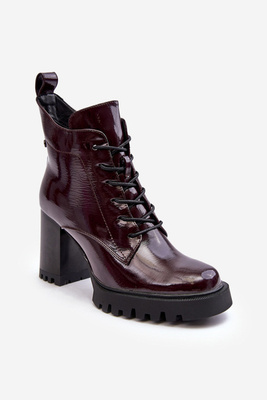+2Botki Lakierowane Na Słupku Ocieplane Bordowe D&A MR870-54