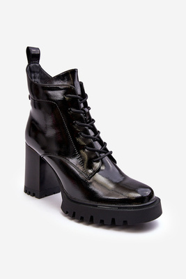 Damskie Lakierowane Botki Workery Na Platformie Czarne Nahili