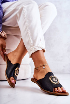 Damskie Modne Skórzane Klapki La.Fi Czarne Menifis