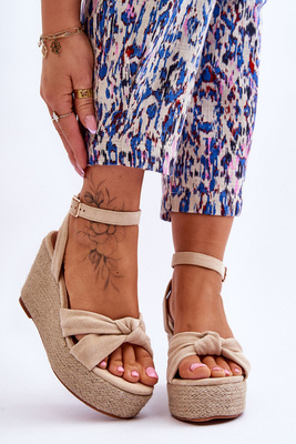 Zamszowe Sandałki Na Koturnie Beżowe Louisiana