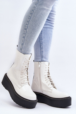 Damskie Lakierowane Botki Na Grubej Podeszwie Białe Movana
