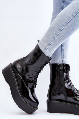 Damskie Lakierowane Botki Workery Na Platformie Czarne Nahili