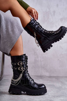 Botki Workery Z Łańcuszkiem Czarne Caleanor