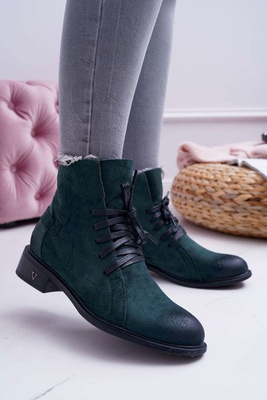 Botki Damskie Płaski Obcas Workery Zielone Teref