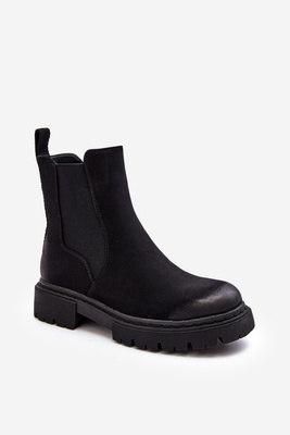 +3Wsuwane Botki Workery Na Płaskim Obcasie Czarne Divella