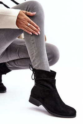 +1Zamszowe Botki Damskie Na Płaskim Obcasie Czarne Klemovia