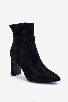 +2Zamszowe Botki Na Słupku Czarne Mellamene