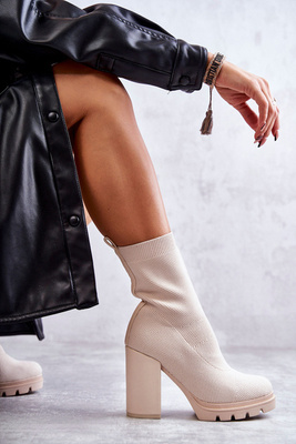 +1Damskie Botki Z Elastyczną Skarpetą Beżowe Carmon