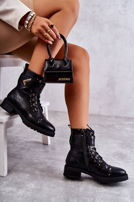 +1Skórzane Damskie Botki Z Ćwiekami Czarne Leticia