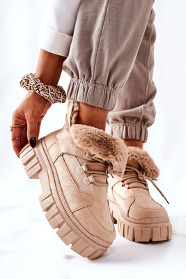 +1Ocieplane Botki Trapery Beżowe Demaris