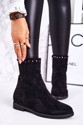 +1Damskie Botki Sztyblety Z Dżetami Zamszowe Czarne Meagan