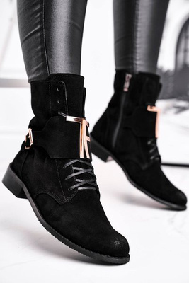 +3Botki Damskie Zamszowe Czarne Nicole 2591