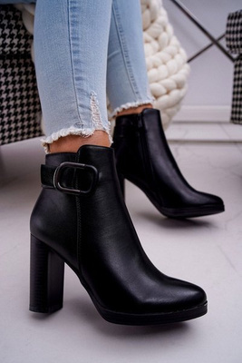 +1Damskie Botki Z Zamkiem Czarne Juno