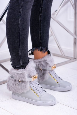 +2Lu Boo Szare Botki z Naturalnym Futrem Gisele