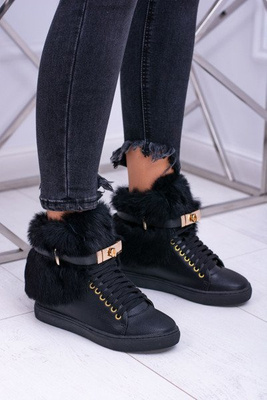 +2Lu Boo Czarne Botki z Naturalnym Futrem Gisele