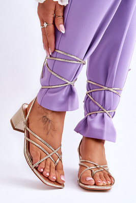 +4Damskie Wiązane Sandałki Na Szpilce Fioletowe Meya