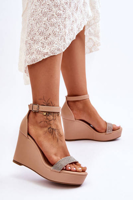 +4Damskie Sandałki Na Koturnie Beżowe Calderia