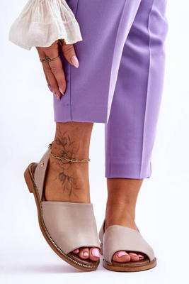 +7Skórzane Wsuwane Sandały Beżowe Alivia