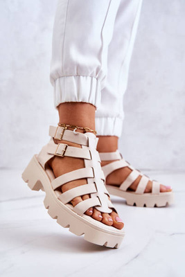 +4Modne Sandały Na Koturnie Beżowe Roseville