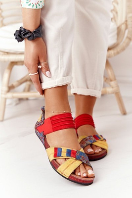 +1Sandały Na Koturnie W Stylu Marynarskim Czerwone La Isla Bonita