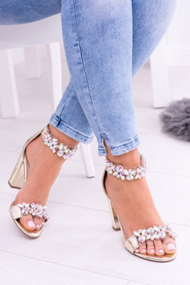+9Lu Boo Złote Lustrzane Sandały Cyrkonie Lambada