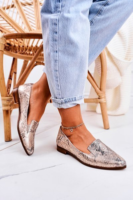 Damskie Skórzane Mokasyny Wzór Zwierzęcy Złote Scarlett