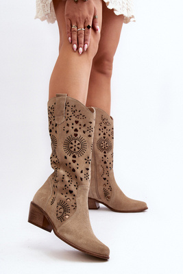 +3Pokaż filmZazoo 3396 Zamszowe Ażurowe Kozaki Do Połowy Łydki Jasnobeżowe
