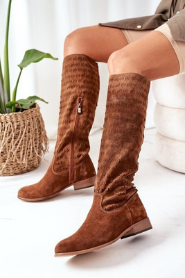 Zamszowe Kozaki Z Ażurowym Wzorem Brązowe Montana