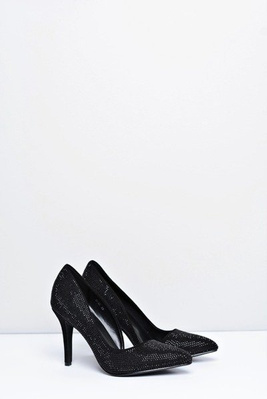 Szpilki Damskie Czarne Zamszowe Cyrkonie Asymetryczne Santee